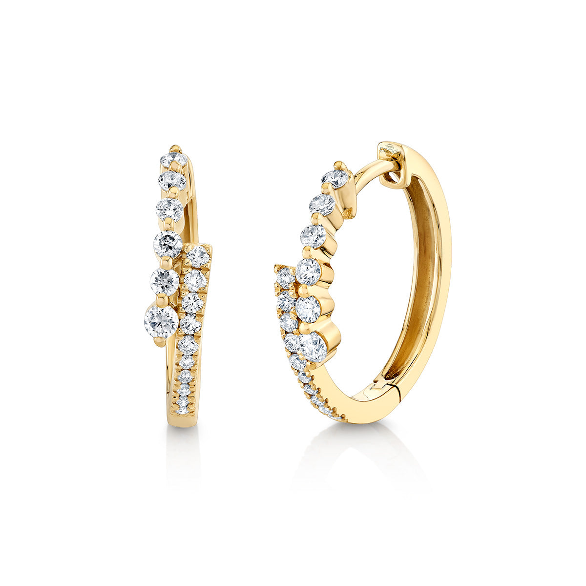 Dazzling diamond huggie hoop earrings featuring a brilliant scatter setting for maximum sparkle. A modern twist on a classic hoop, expertly crafted in rich yellow gold. Effortless luxury you'll reach for daily.