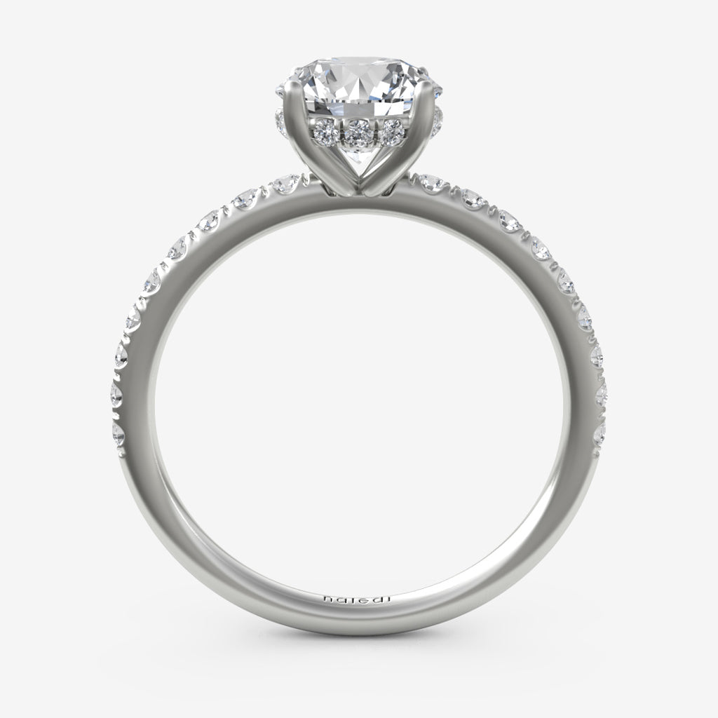 Half way plus one fish tail set diamond engagement ring with comfort fit. Center Diamond not included. Prices listed in 14K. 18K and Platinum metals also available. Engagement rings are available in various head sizes and shapes. Prices may vary.