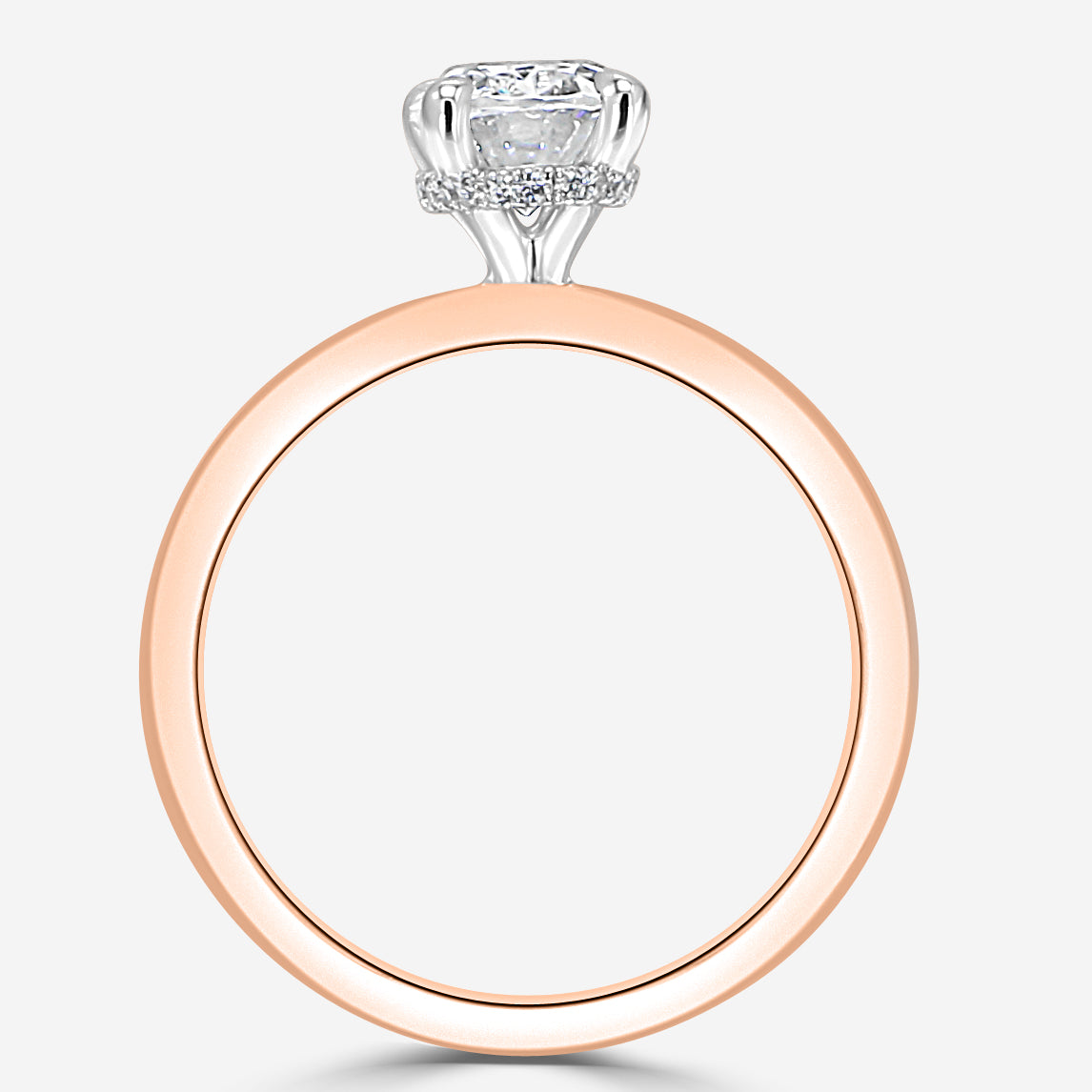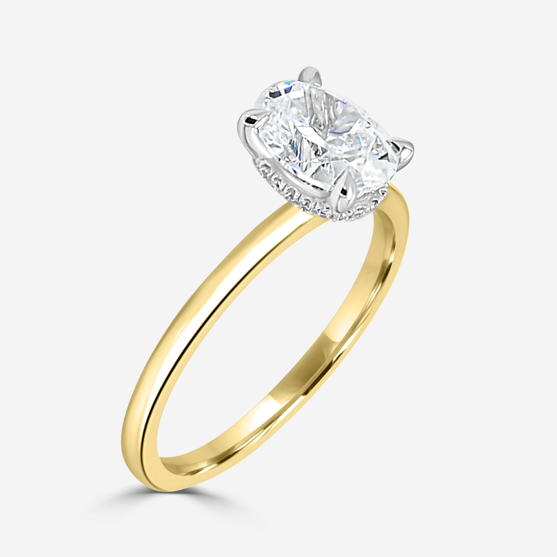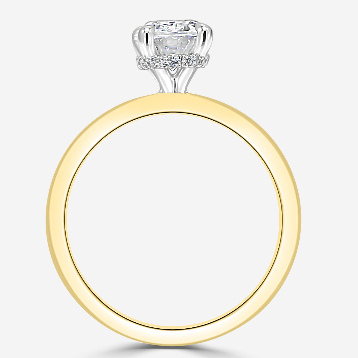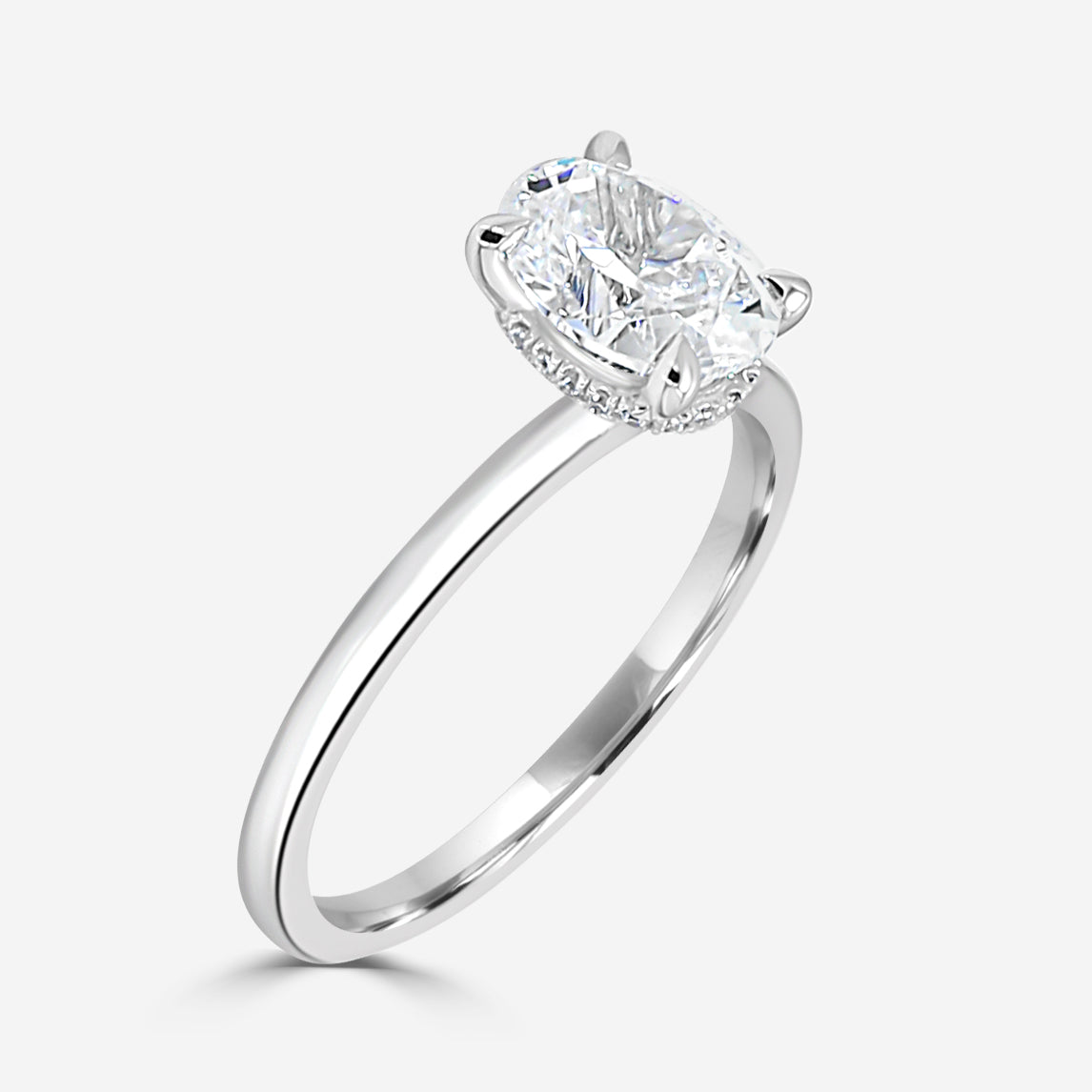 Solitaire engagement ring with diamond underhalo. Center Diamond not included. Prices listed in 14K. 18K and Platinum metals also available. Engagement rings are available in various head sizes and shapes. Prices may vary.