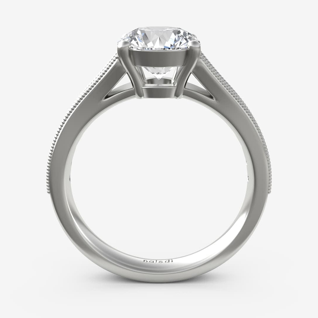 Milgrained tapered down diamond shank cathedral. Center Diamond not included. Prices listed in 14K. 18K and Platinum metals also available. Engagement rings are available in various head sizes and shapes. Prices may vary.