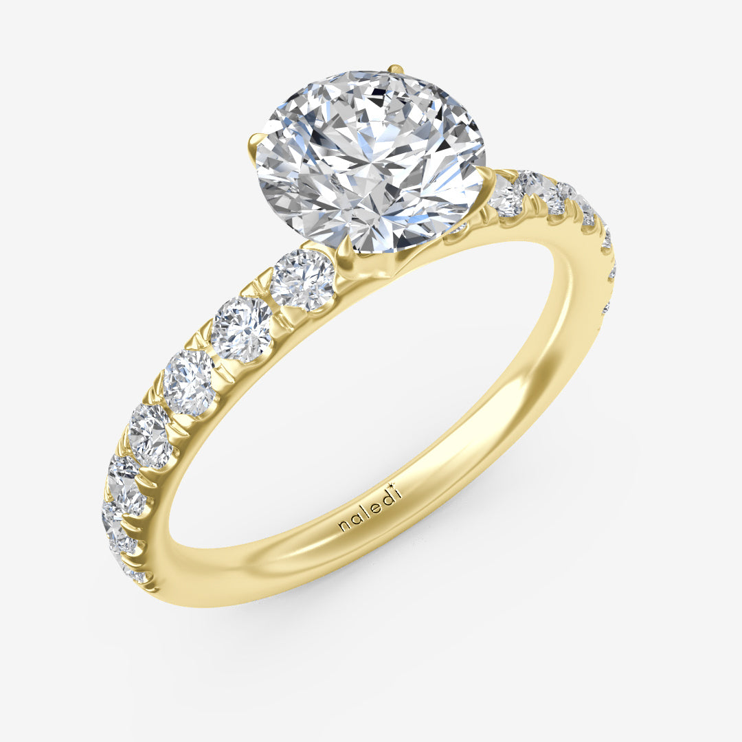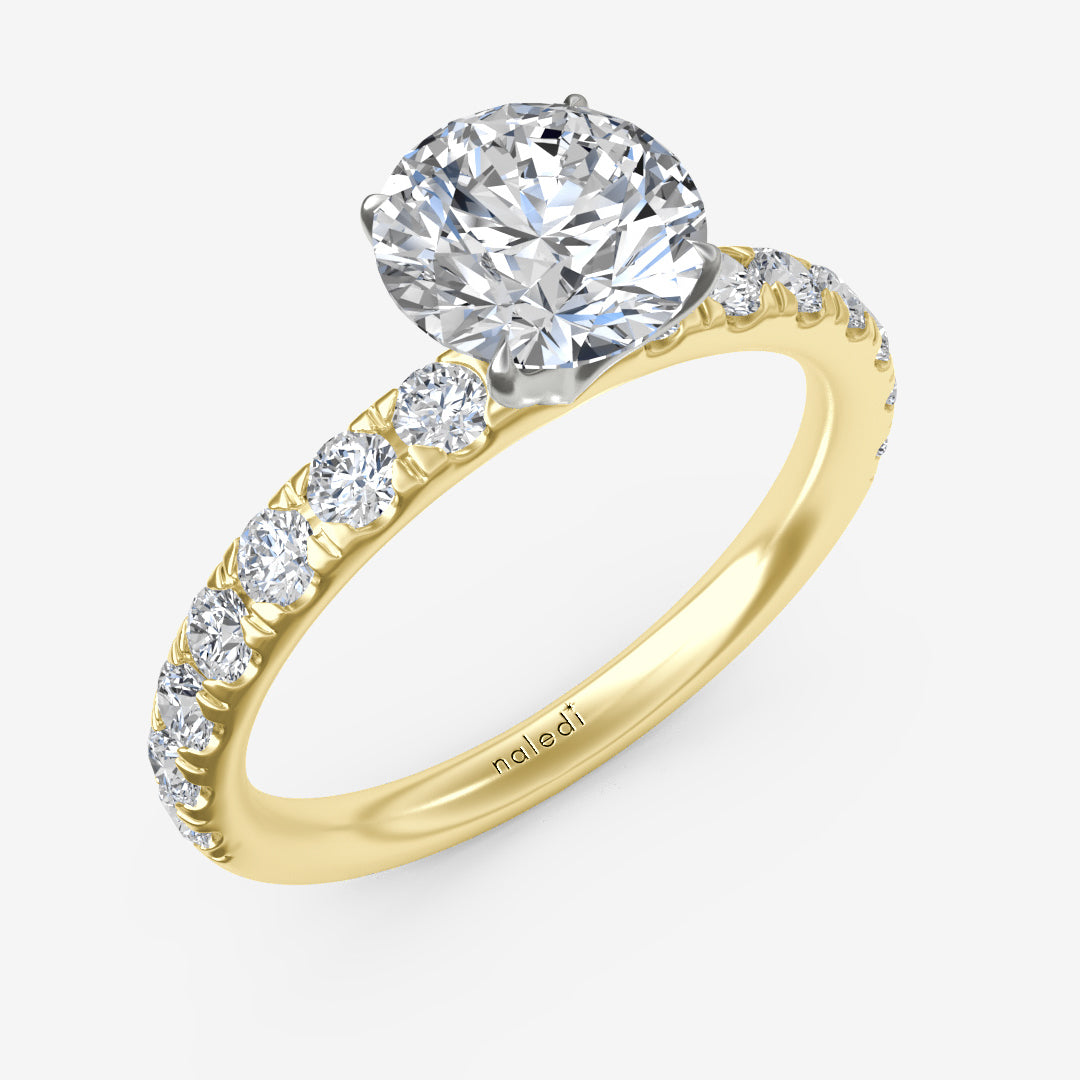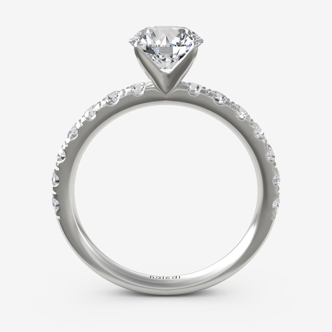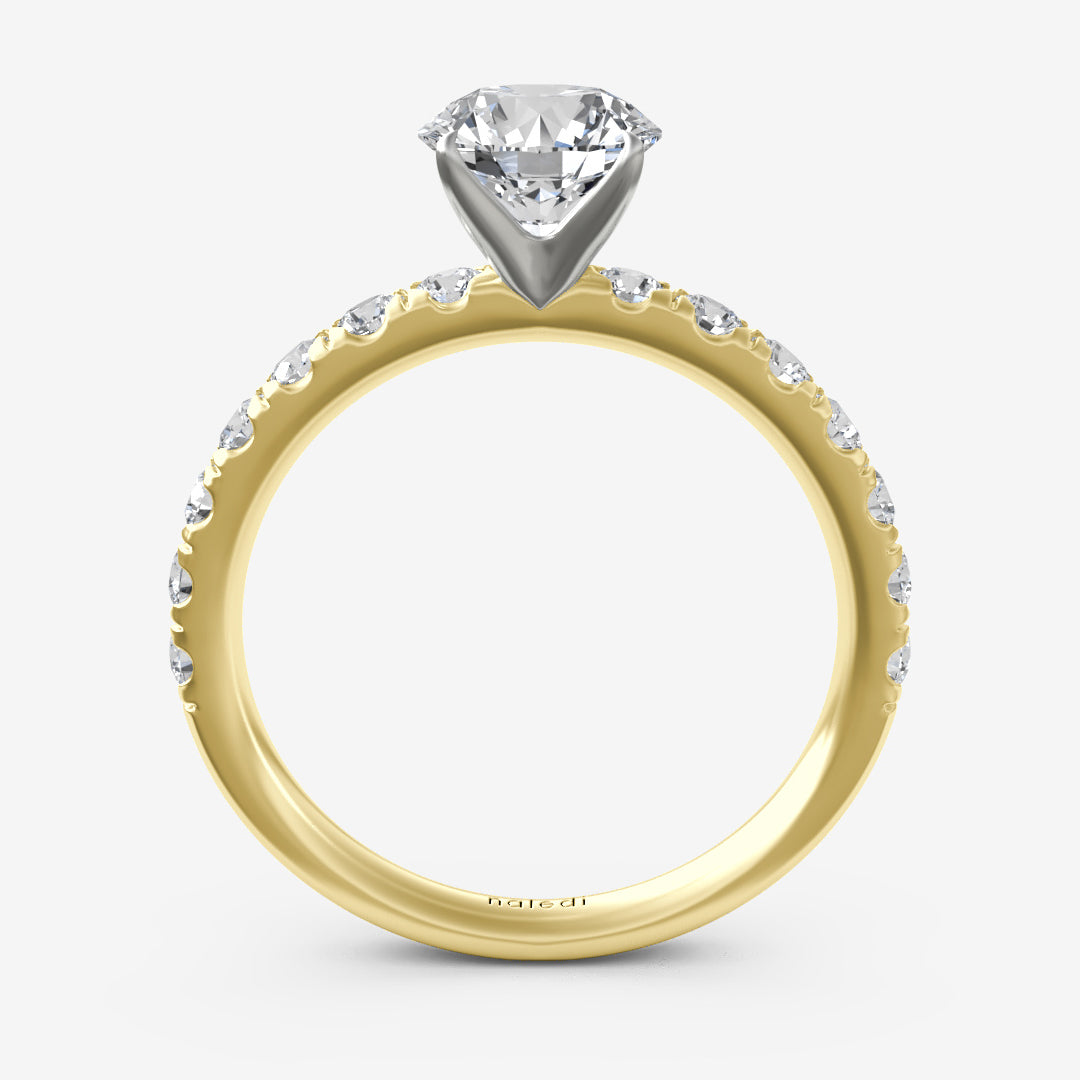 Low profile peg head solitaire with large diamond shank. Center Diamond not included. Prices listed in 14K. 18K and Platinum metals also available. Engagement rings are available in various head sizes and shapes. Prices may vary.
