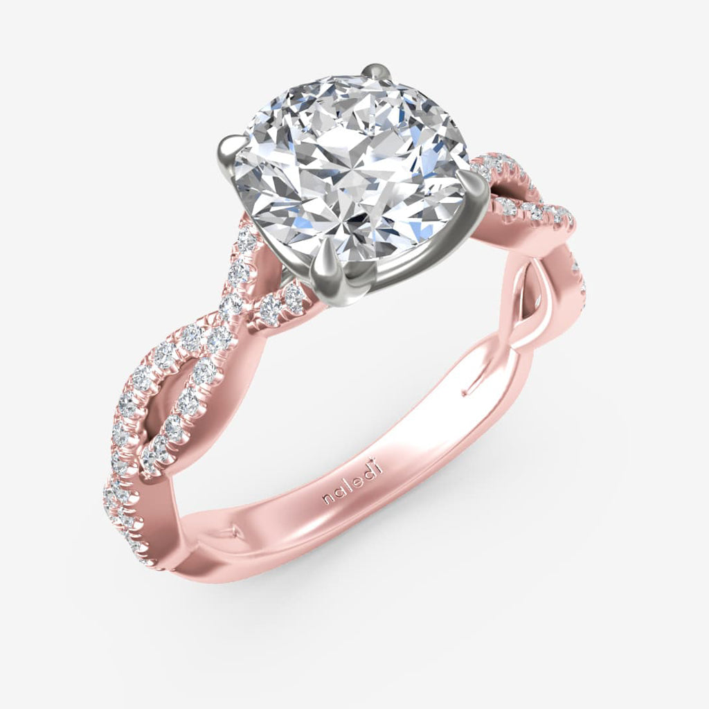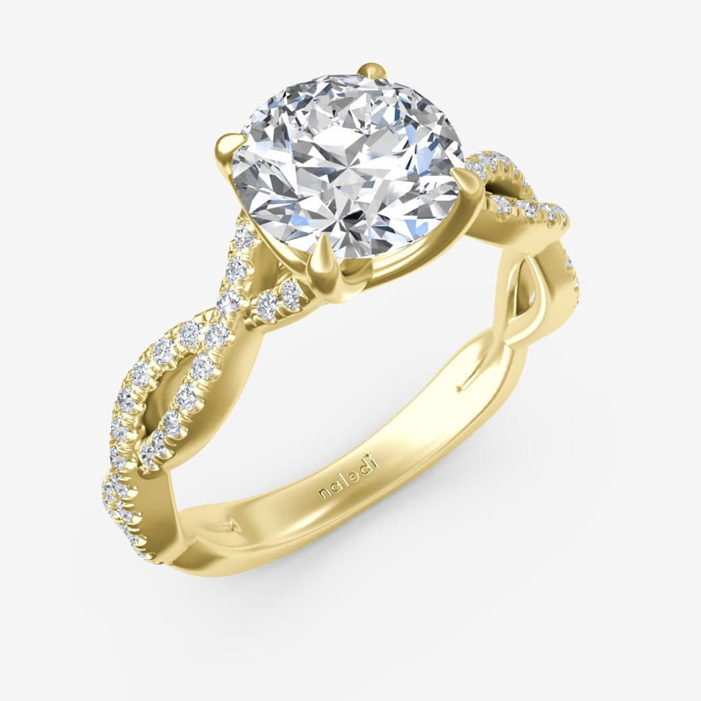 Delicate twisted diamond shank setting. Center Diamond not included. Prices listed in 14K. 18K and Platinum metals also available. Engagement rings are available in various head sizes and shapes. Prices may vary.