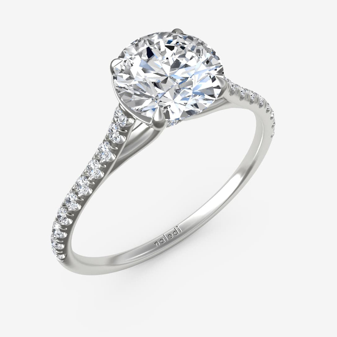 Cathedral setting with diamond circle on undercarriage. Center Diamond not included. Prices listed in 14K. 18K and Platinum metals also available. Engagement rings are available in various head sizes and shapes. Prices may vary.