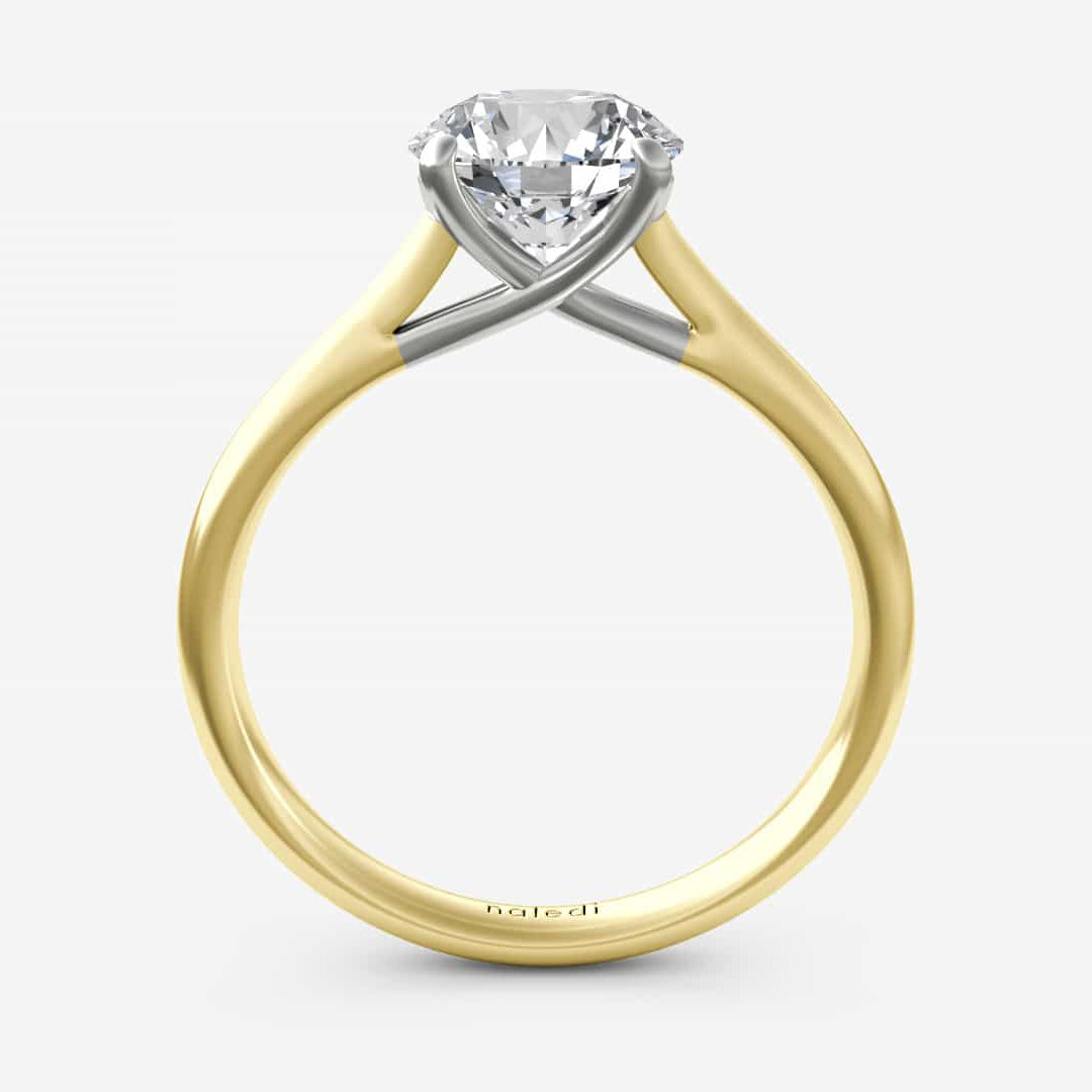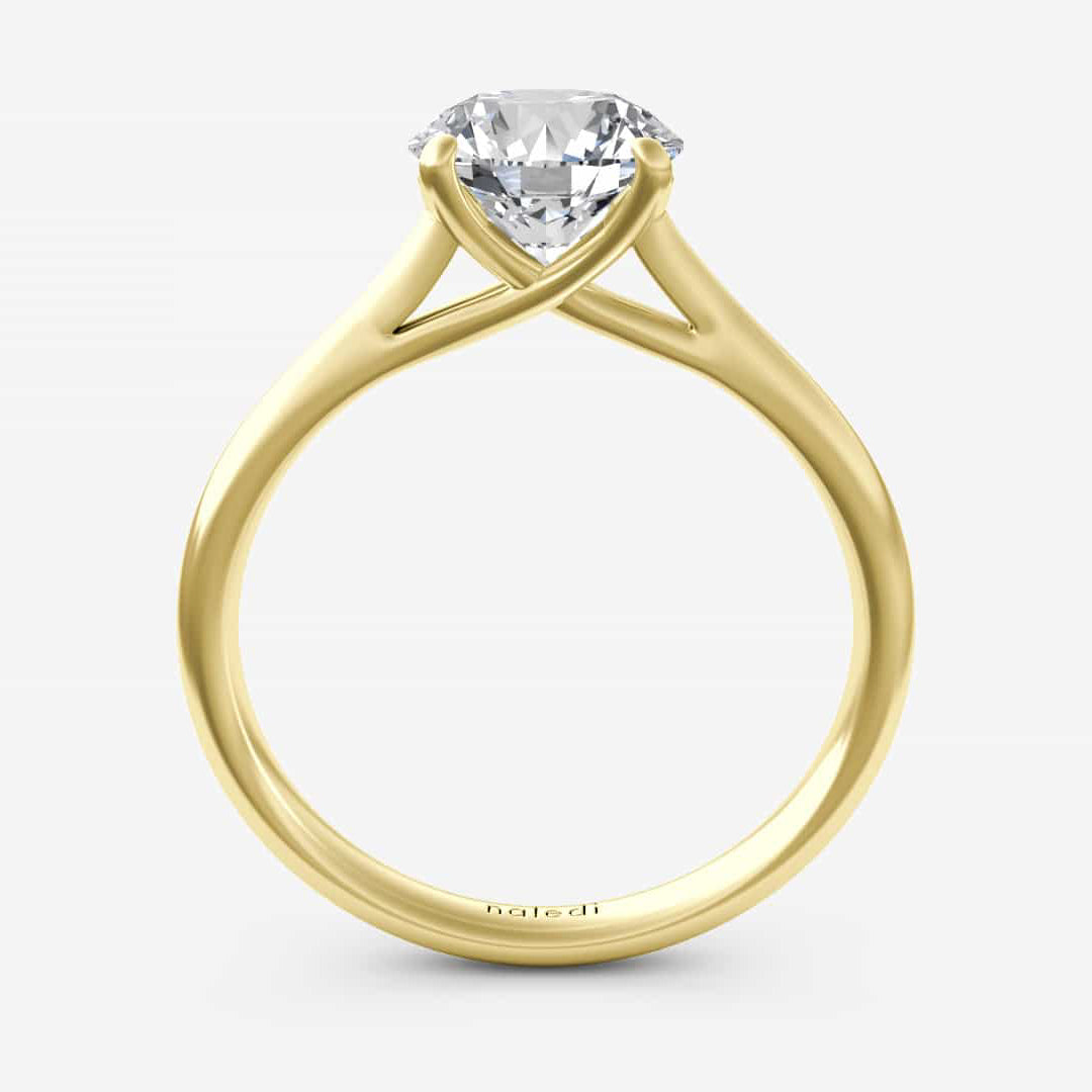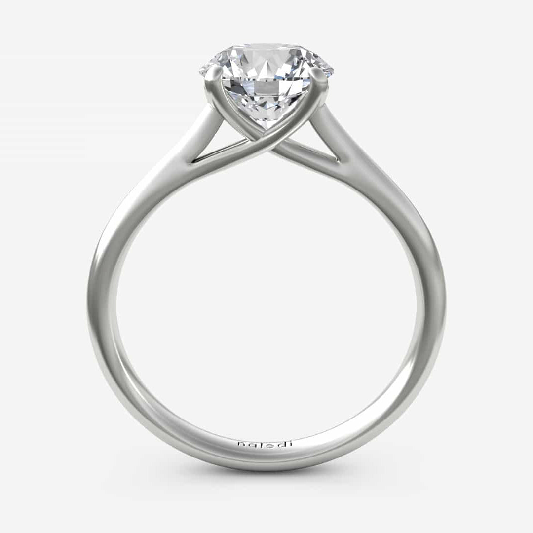 Basic cathedral 4 prong solitaire with straight high polish shank. Center Diamond not included. Prices listed in 14K. 18K and Platinum metals also available. Engagement rings are available in various head sizes and shapes. Prices may vary.
