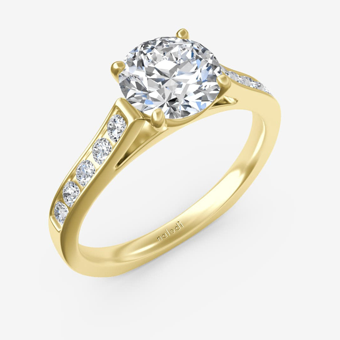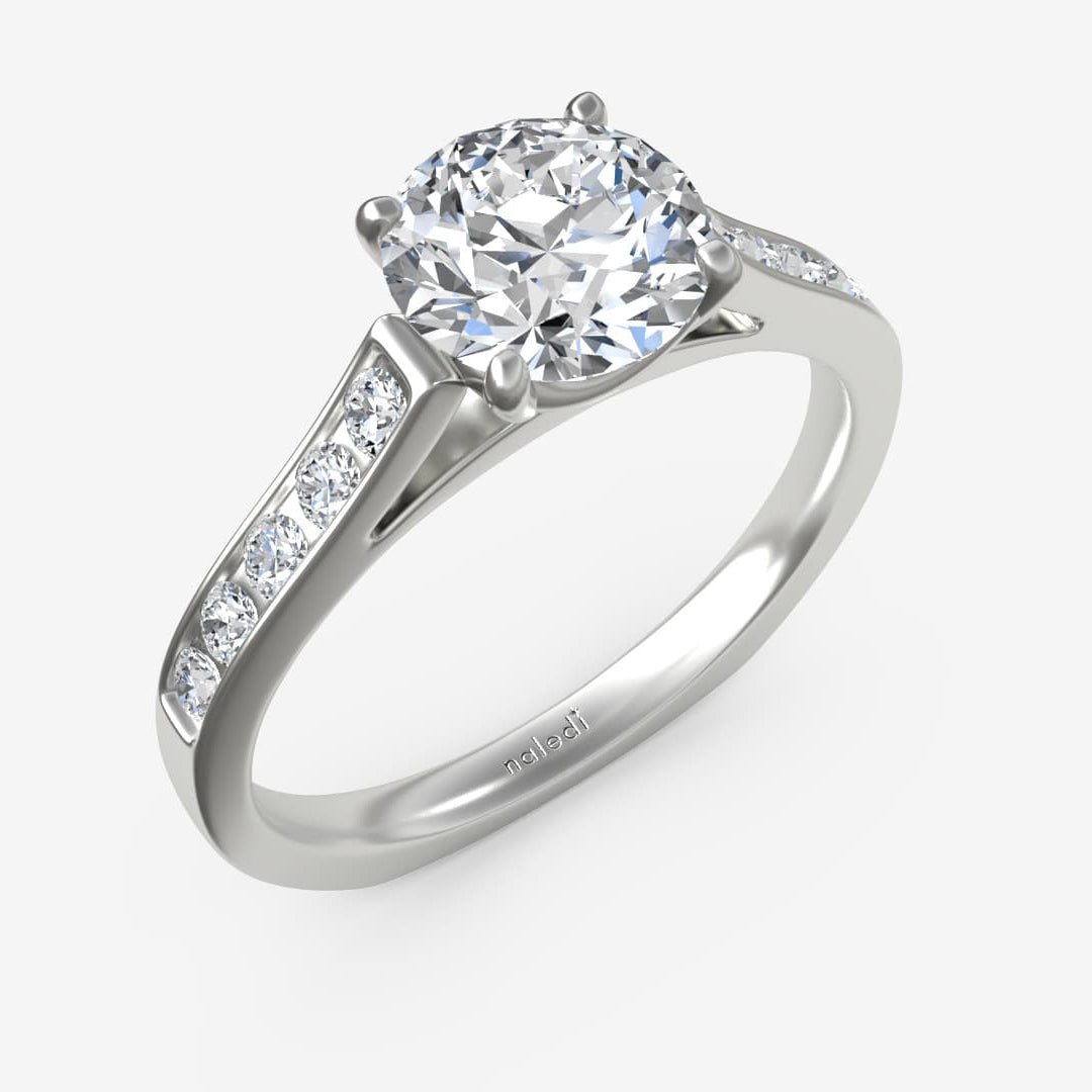 Diamond channel catheadral with euro shank and peg head. Center Diamond not included. Prices listed in 14K. 18K and Platinum metals also available. Engagement rings are available in various head sizes and shapes. Prices may vary.