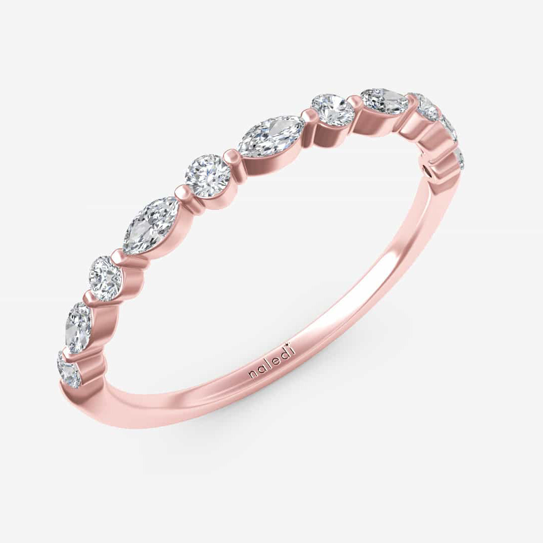Half way around alternating marquise and round diamond diamond band