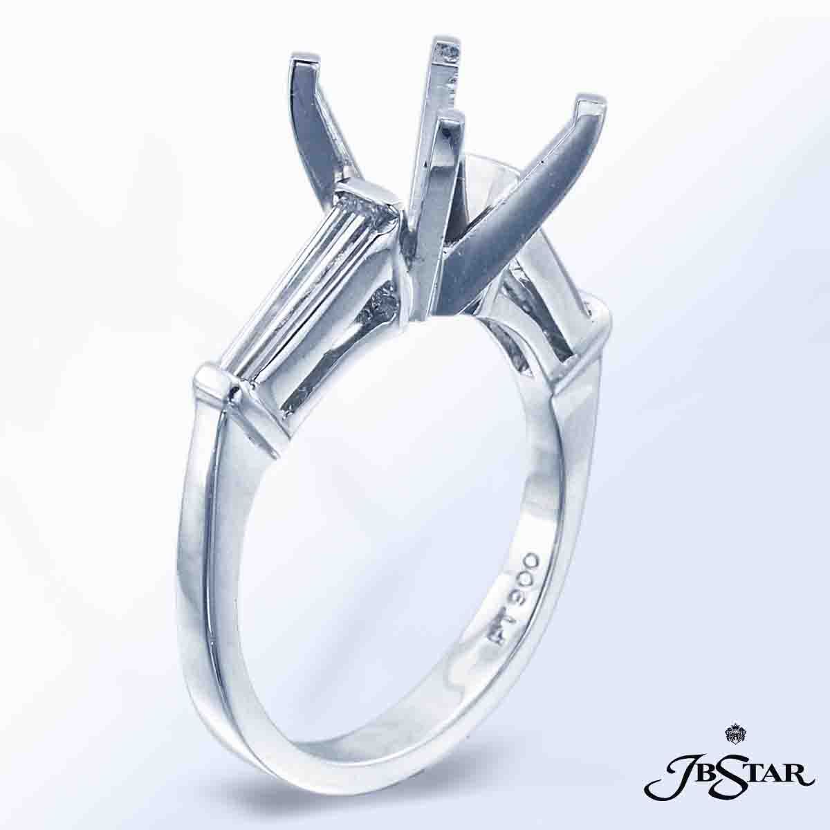 Beautiful diamond semi-mount featuring 2 tapered baguette diamonds in a channel setting. Handcrafted in pure platinum.