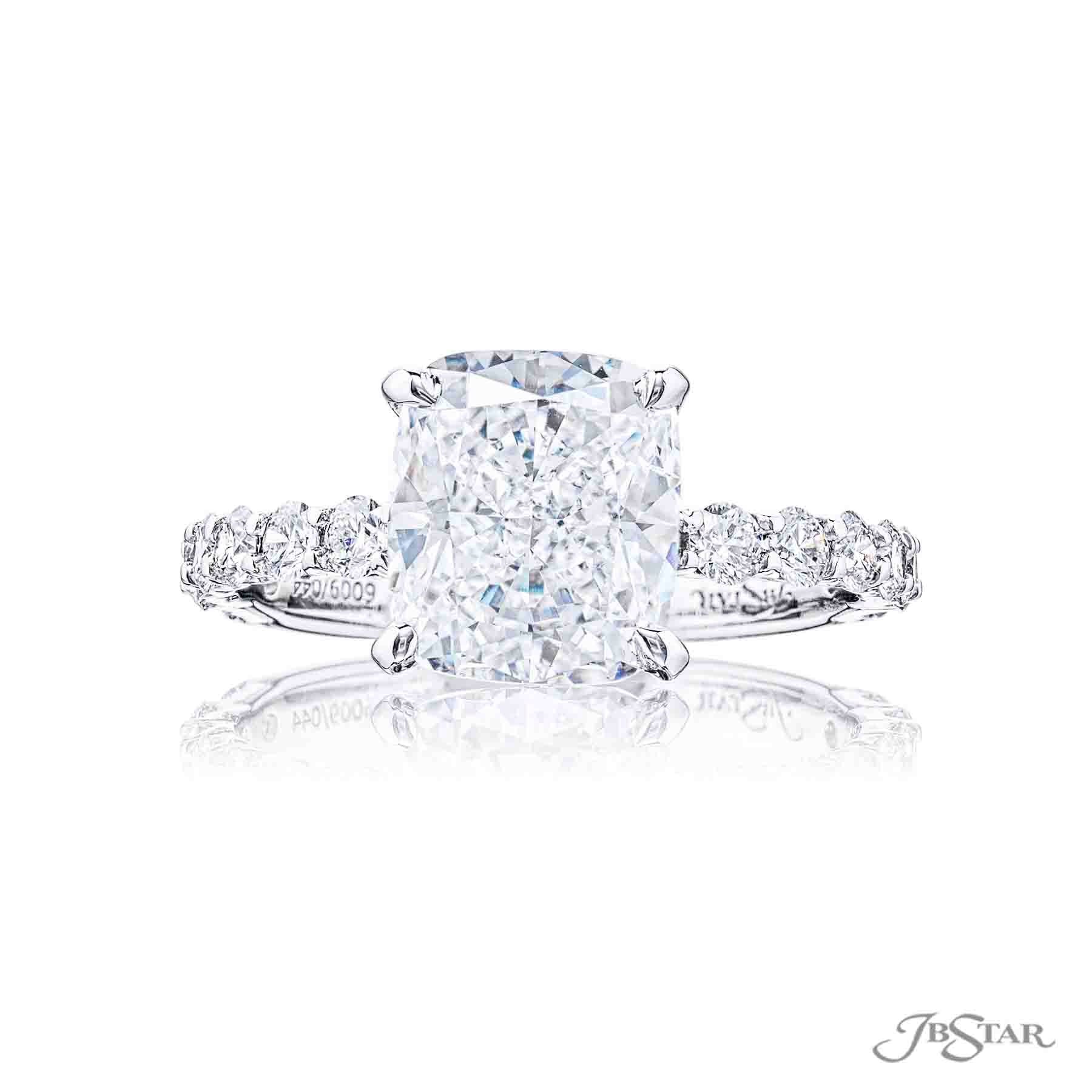 Gorgeous diamond engagement ring featuring a 2.71 ct. GIA certified oval diamond center with round pave diamonds on the shank. Handcrafted in pure platinum.
