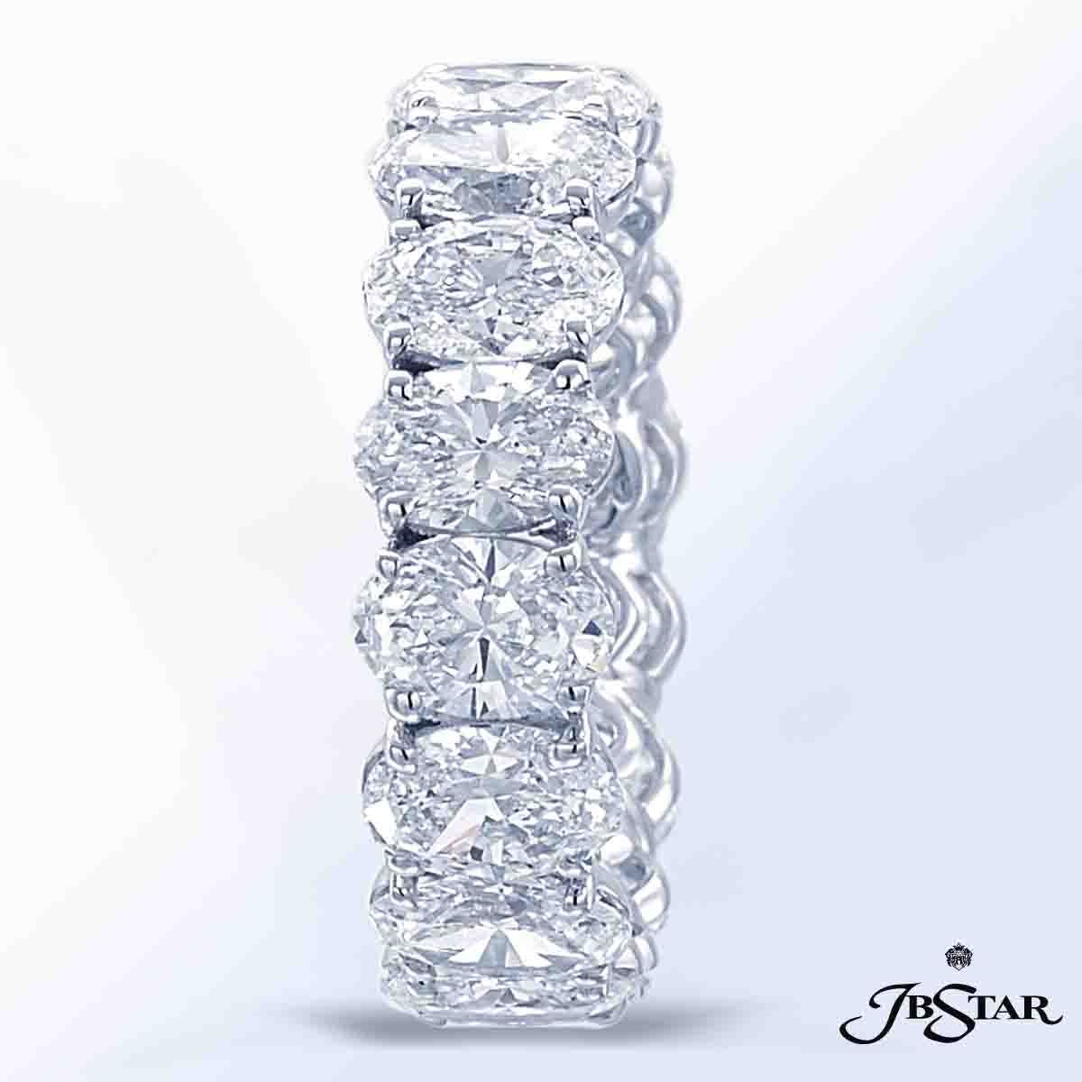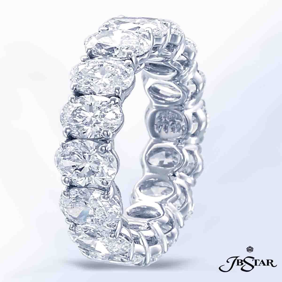 Stunning diamond eternity band featuring 16 oval diamonds in a shared prong setting. Handcrafted in pure platinum.