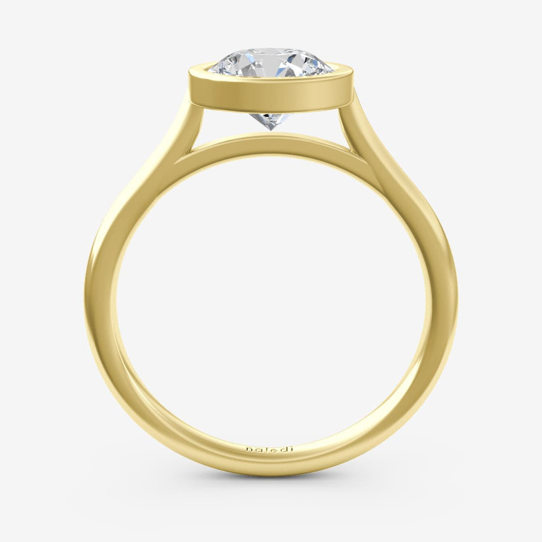 Basic cathedral bezel-set solitaire. Center Diamond not included. Prices listed in 14K. 18K and Platinum metals also available. Engagement rings are available in various head sizes and shapes. Prices may vary.