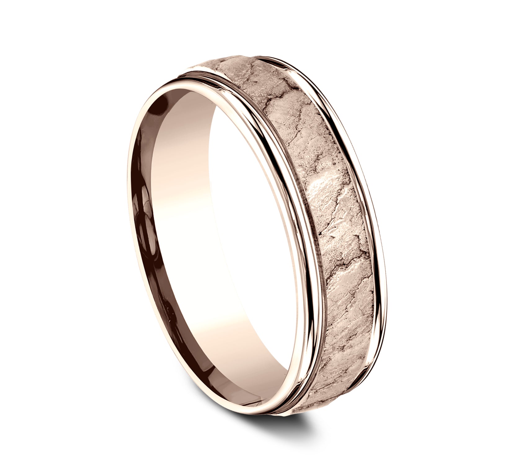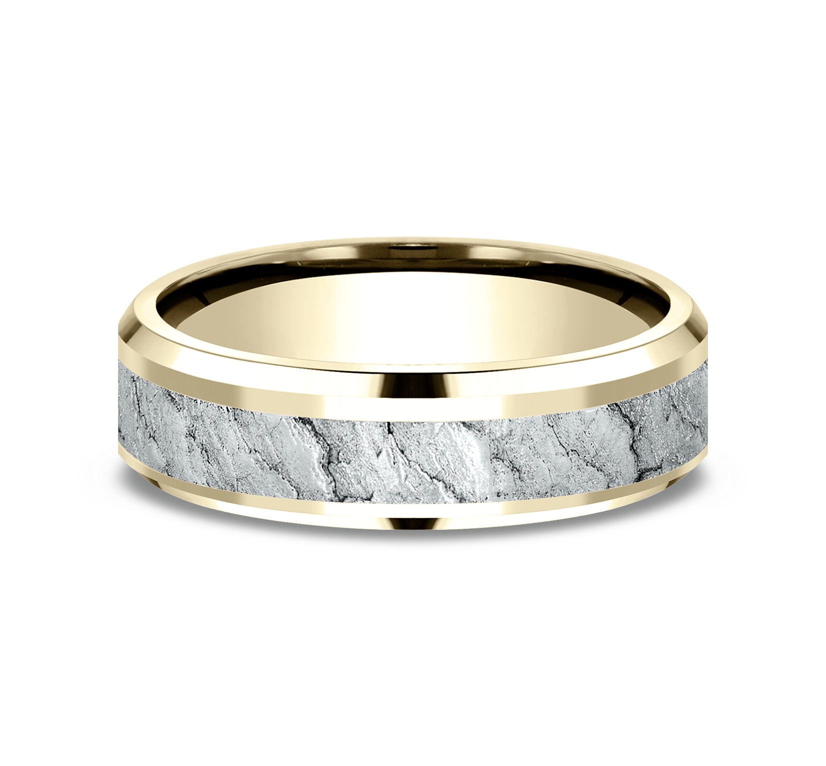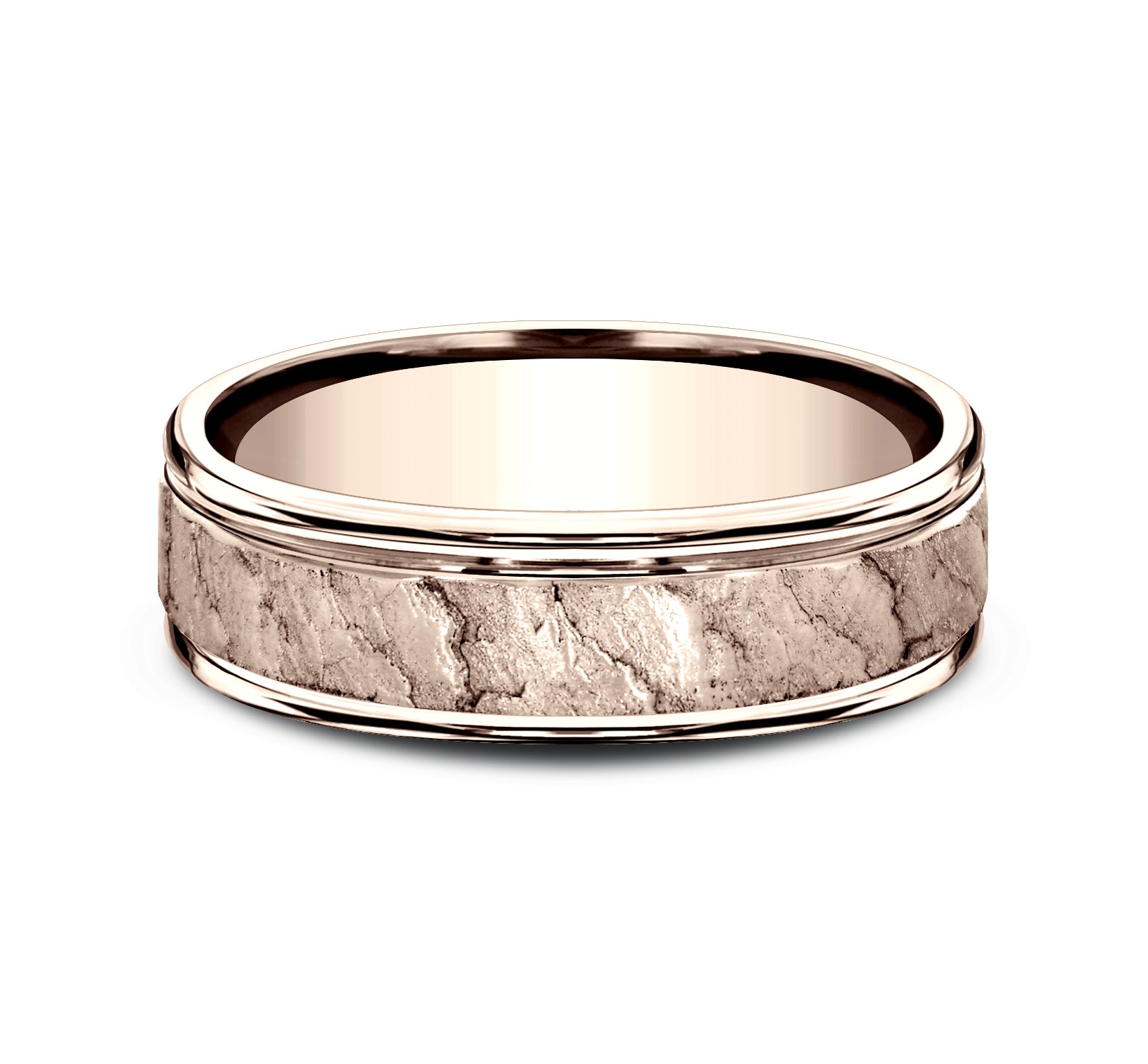 7mm, Lightweight comfort fit 14K White Gold Lava rock textured center, polished bevel edges