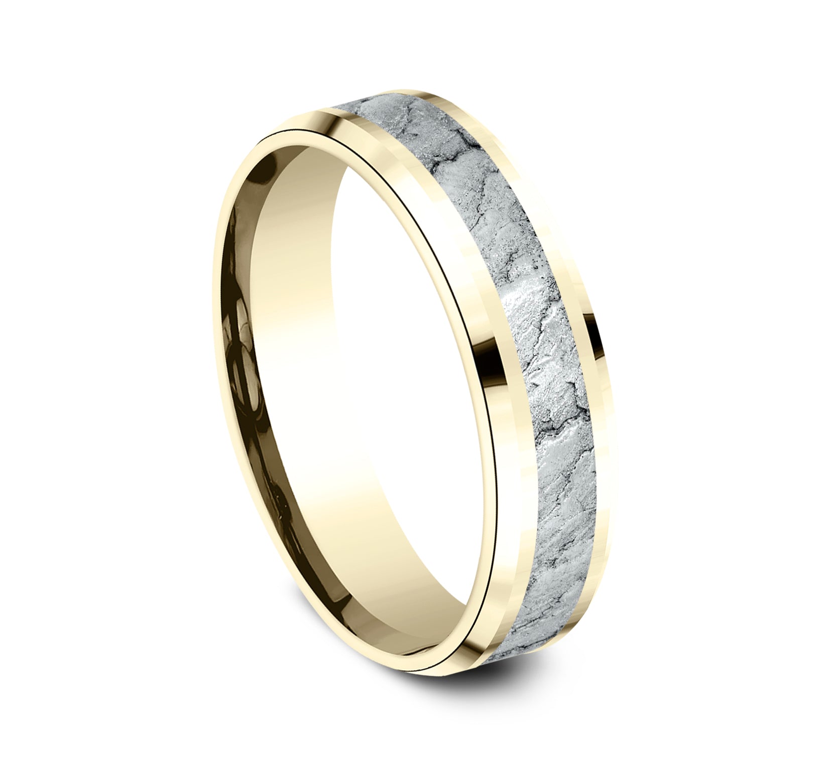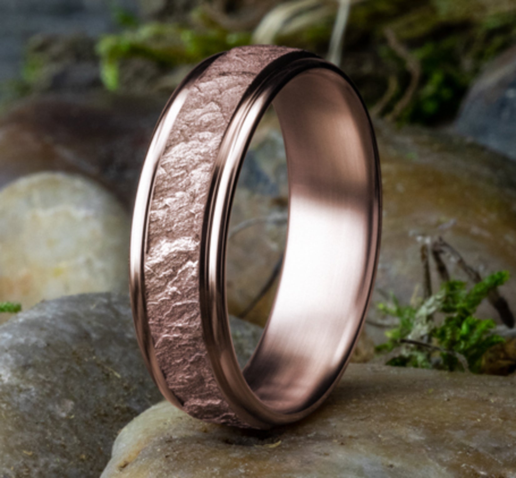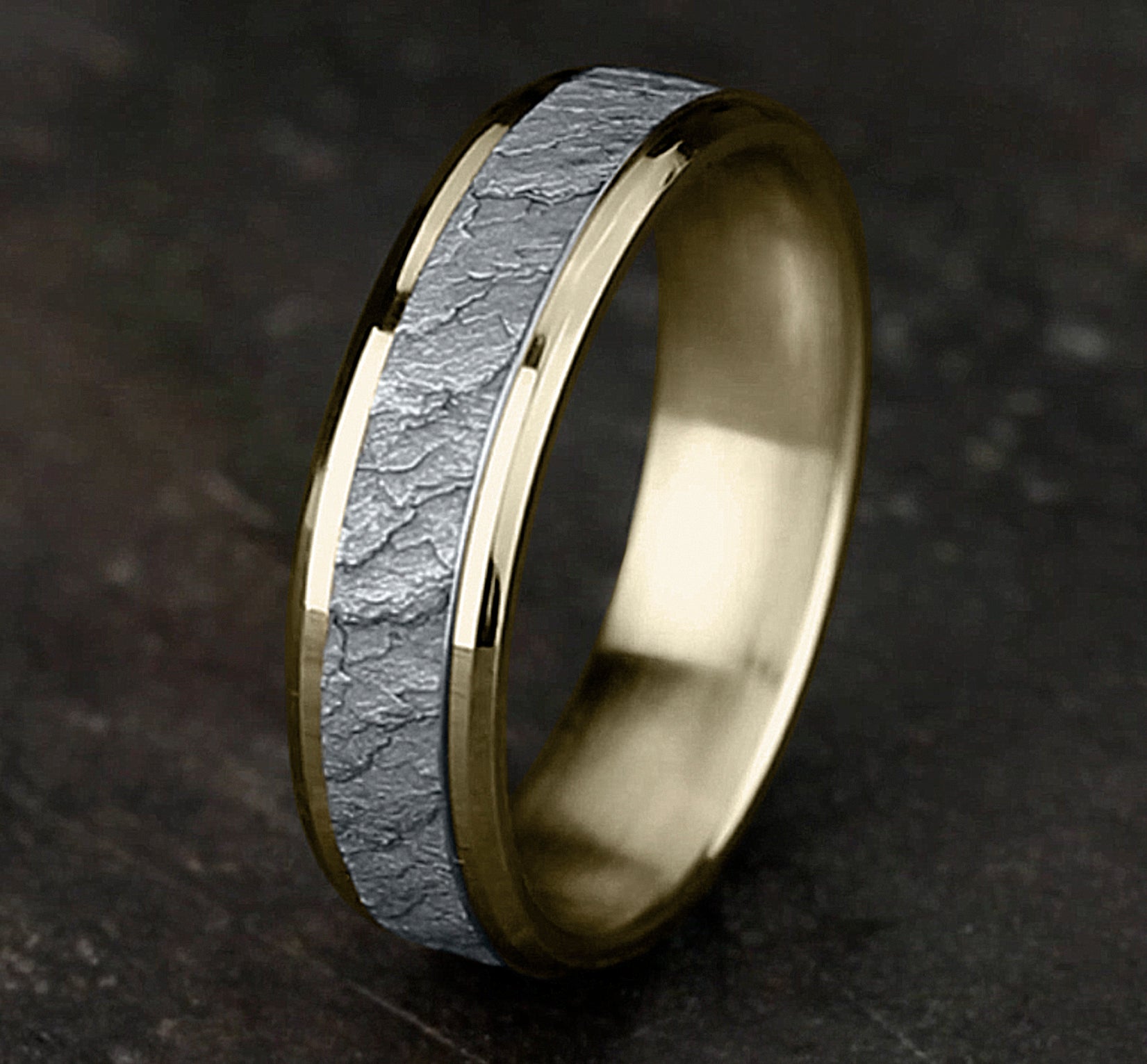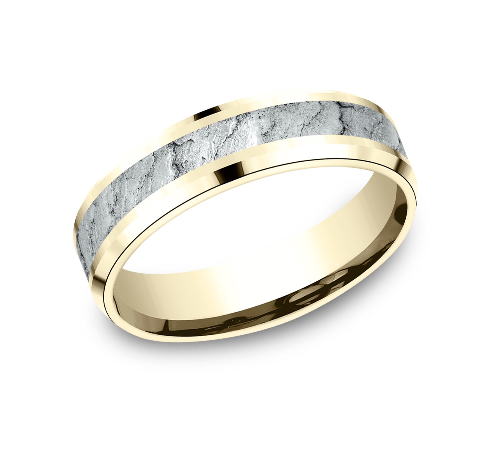 7mm, Lightweight comfort fit 14K White Gold Lava rock textured center, polished bevel edges