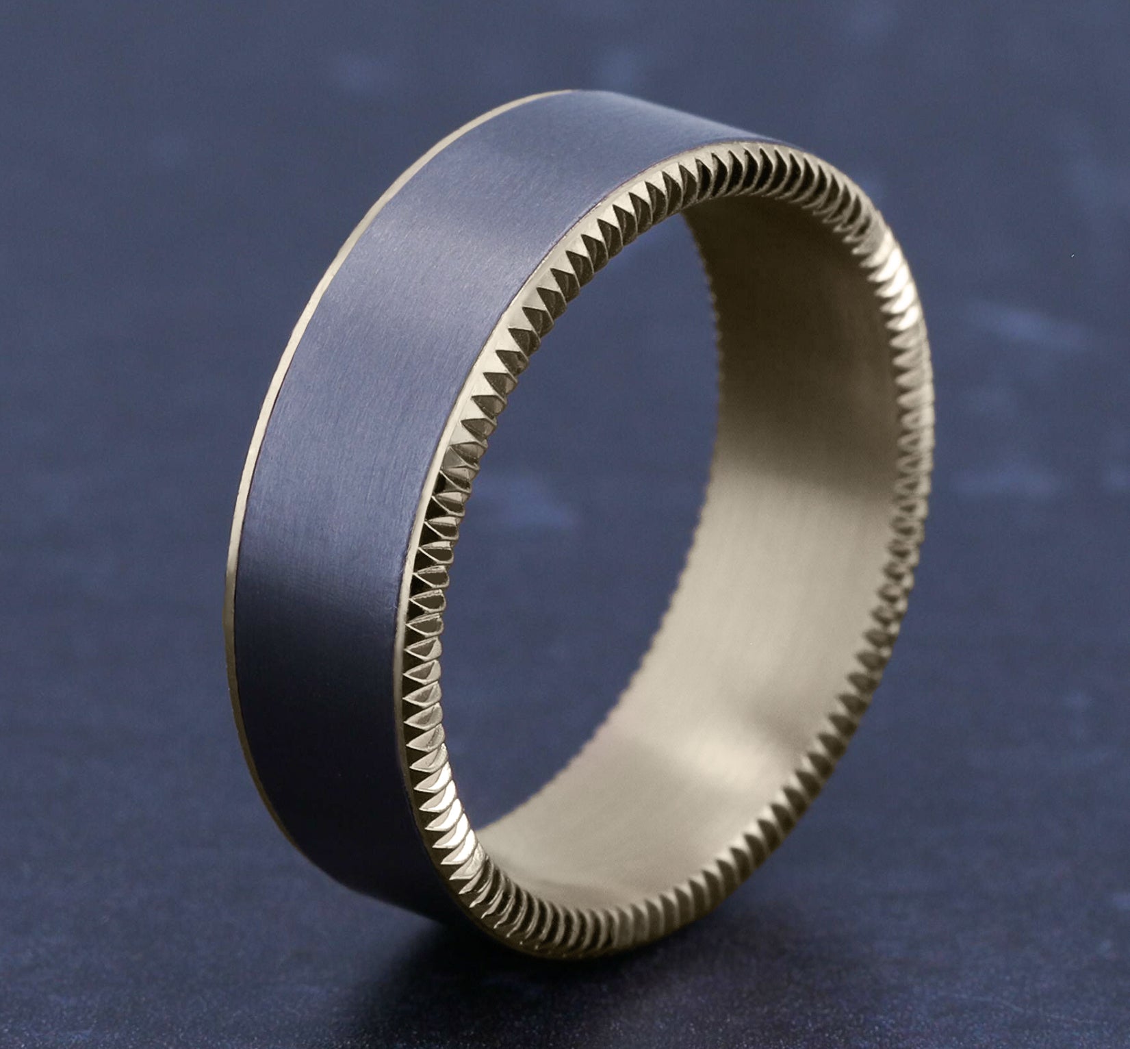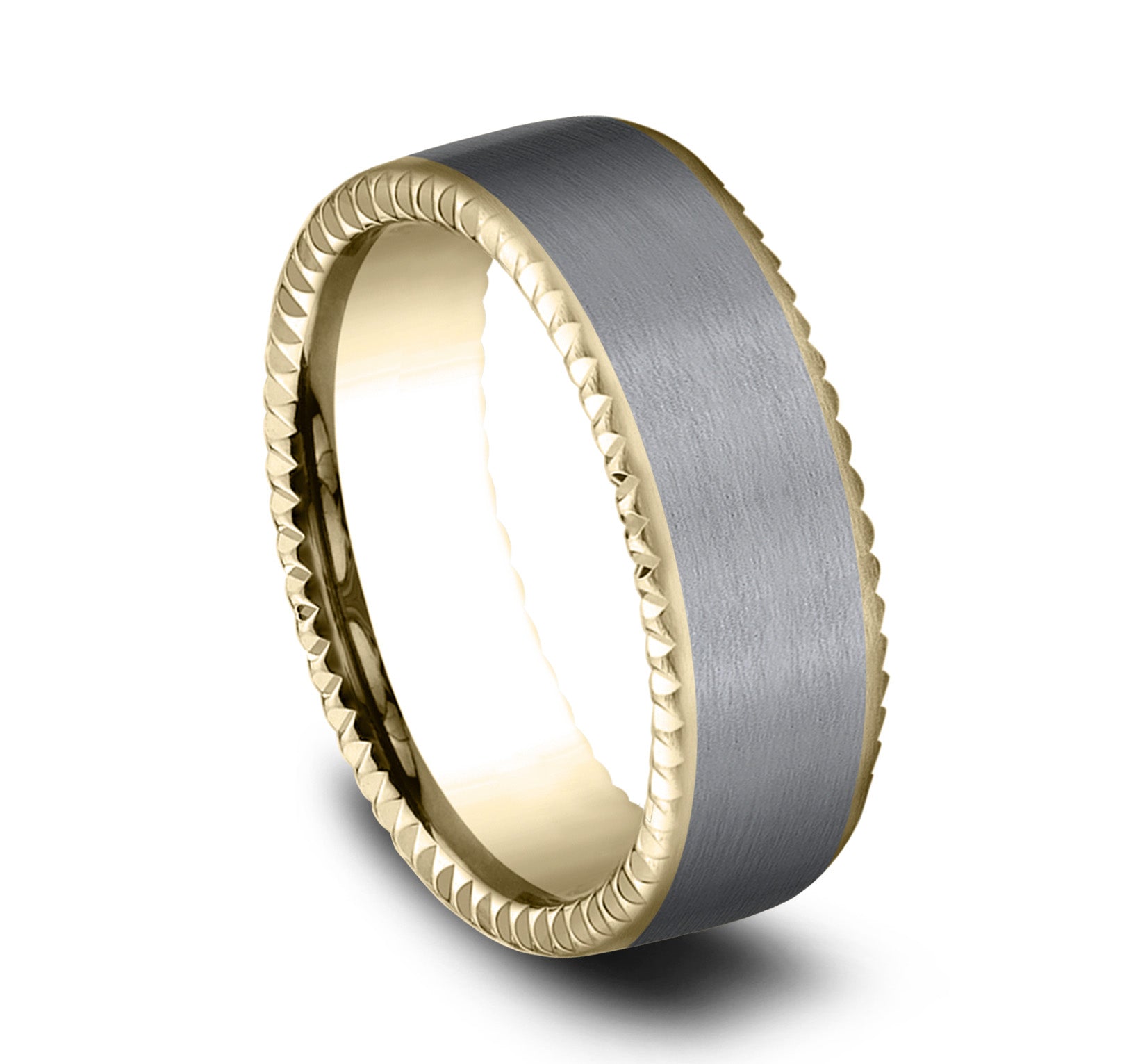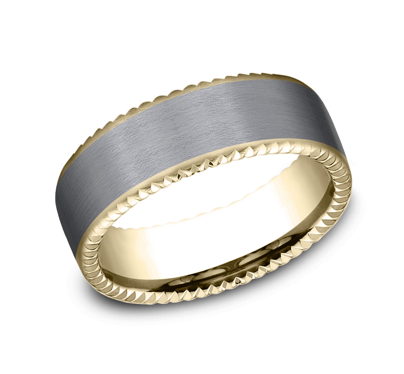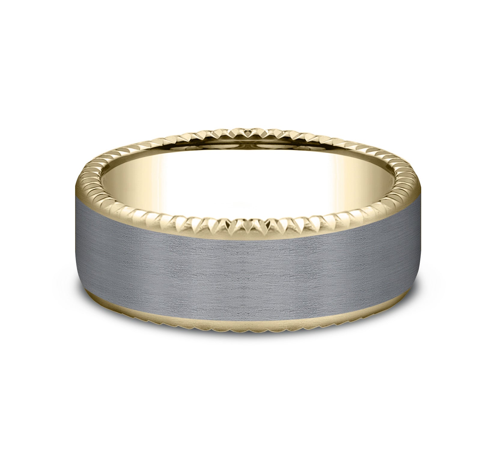 7.5mm, Comfort fit 14K Rose Gold and Forged Carbon Fiber Forged carbon fiber center, milgrain edges