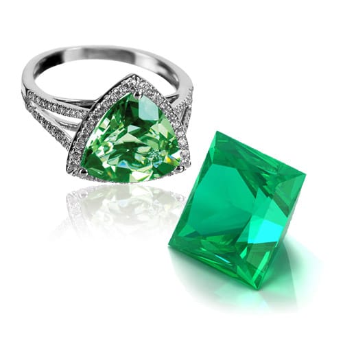 As the birthstone for May, the emerald, a symbol of rebirth, is believed to grant the owner foresight, good fortune, and youth. Emerald, derived from the word smaragdus, meaning green in Greek, was mined in Egypt as early as 330 B.C. Today, most of the world’s emeralds are mined in Colombia, Brazil, Afghanistan, and Zambia. The availability of high-quality emerald is limited; consequently, treatments to improve clarity are performed regularly.